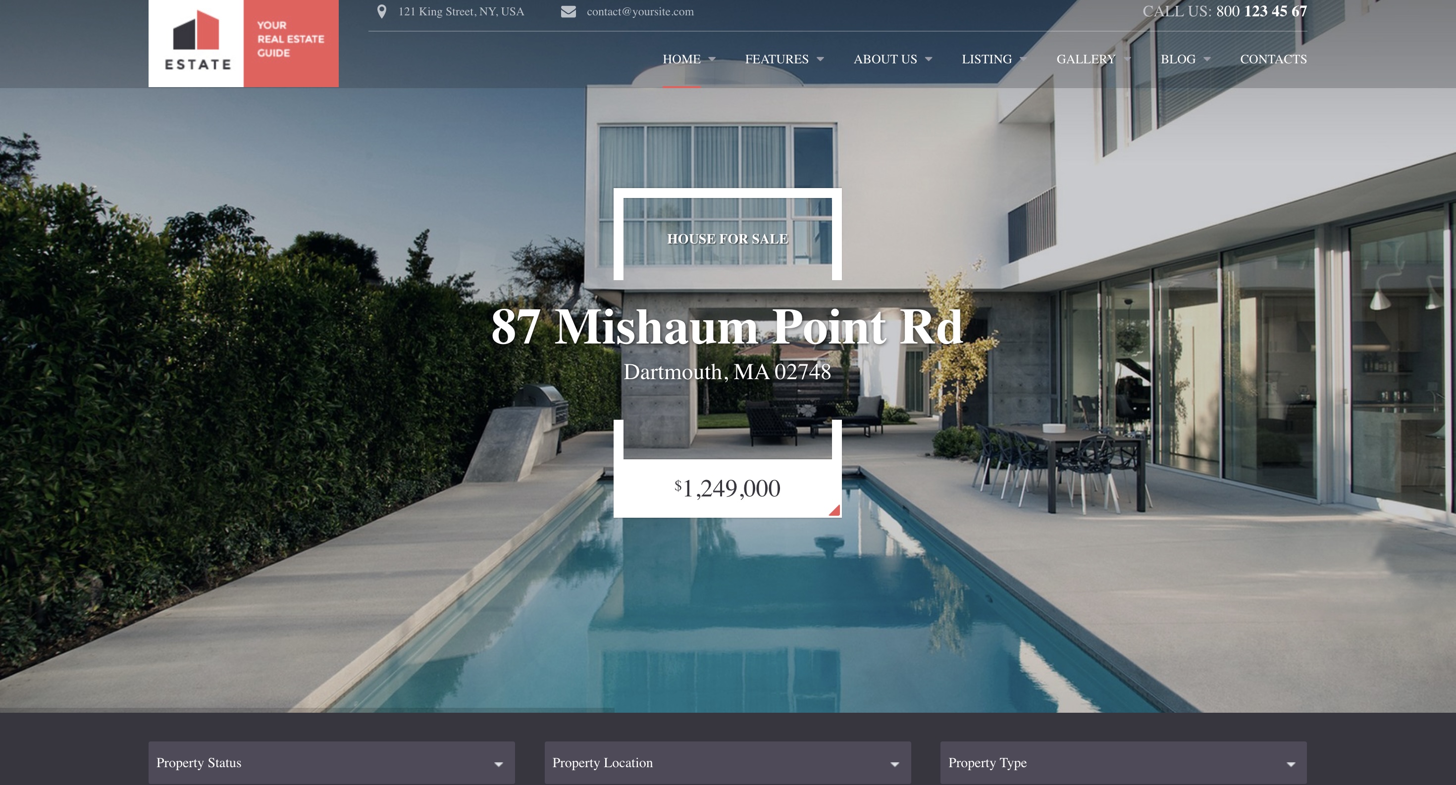 Property listing website with search functionality, virtual tours, and professional property showcases.